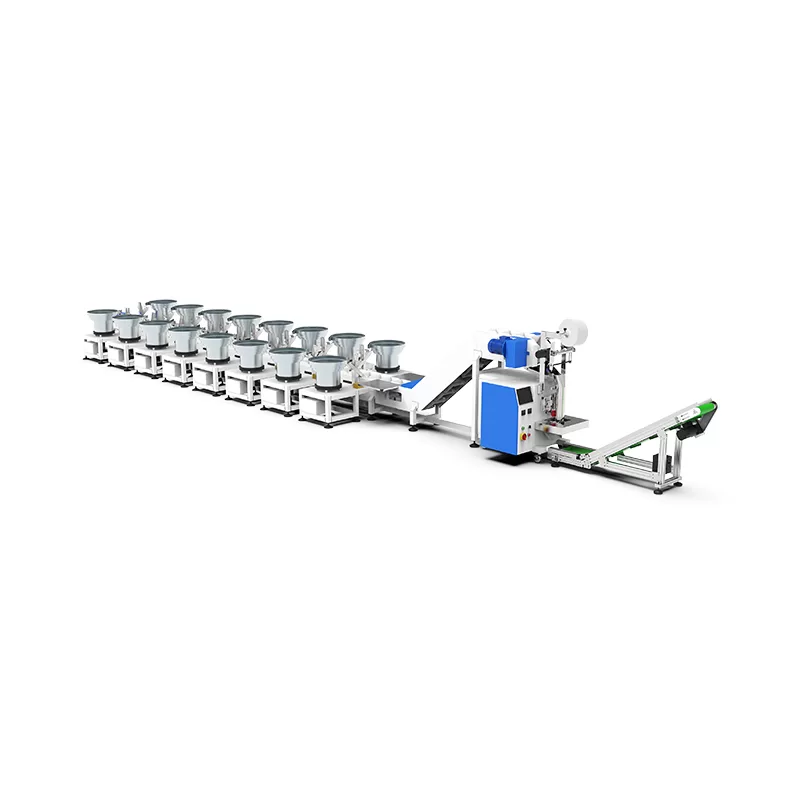 此自动化包装线由佛山森洋自动化包装设备有限公司自主设计开发,顺应当代工业4.0智能制造的潮流,结合我国国情,并针对各行业现况还以人工为主要劳动力的生产企业所研发设计制造出的全自动化多物料混合包装线,本包装线广泛应用于配件包,附件包等自动化打包,主要在家具配件,汽车配件,五金配件,积木玩具,电器配件,混合食品等行业的包装领域,此包装线能全自动完成上料、供料、理料、计数/称重、输送、制袋、打码、填充、封袋、称重复检等包装工序。